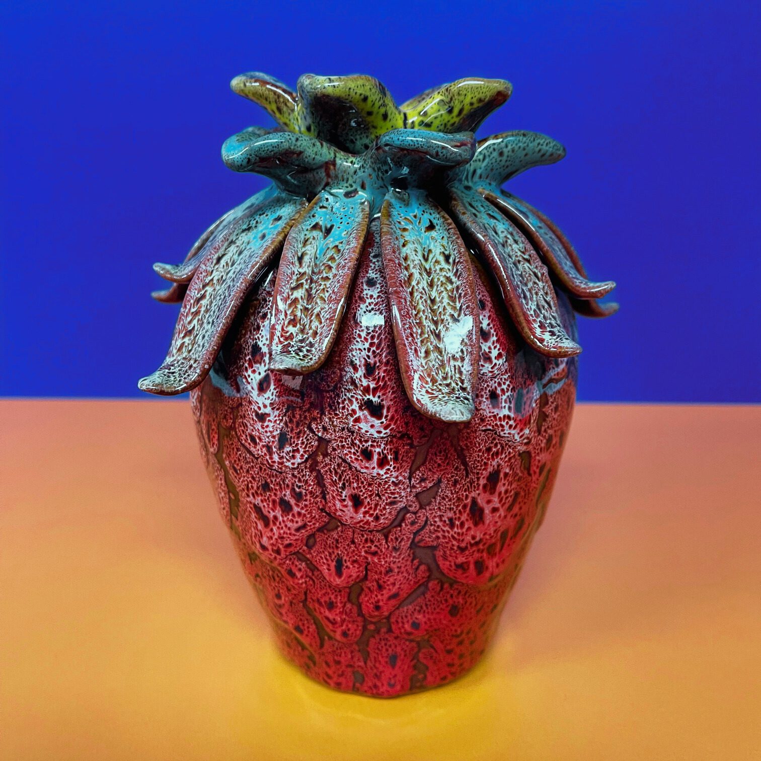 Mooie blauwe bolvaas van keramiek met vlinders